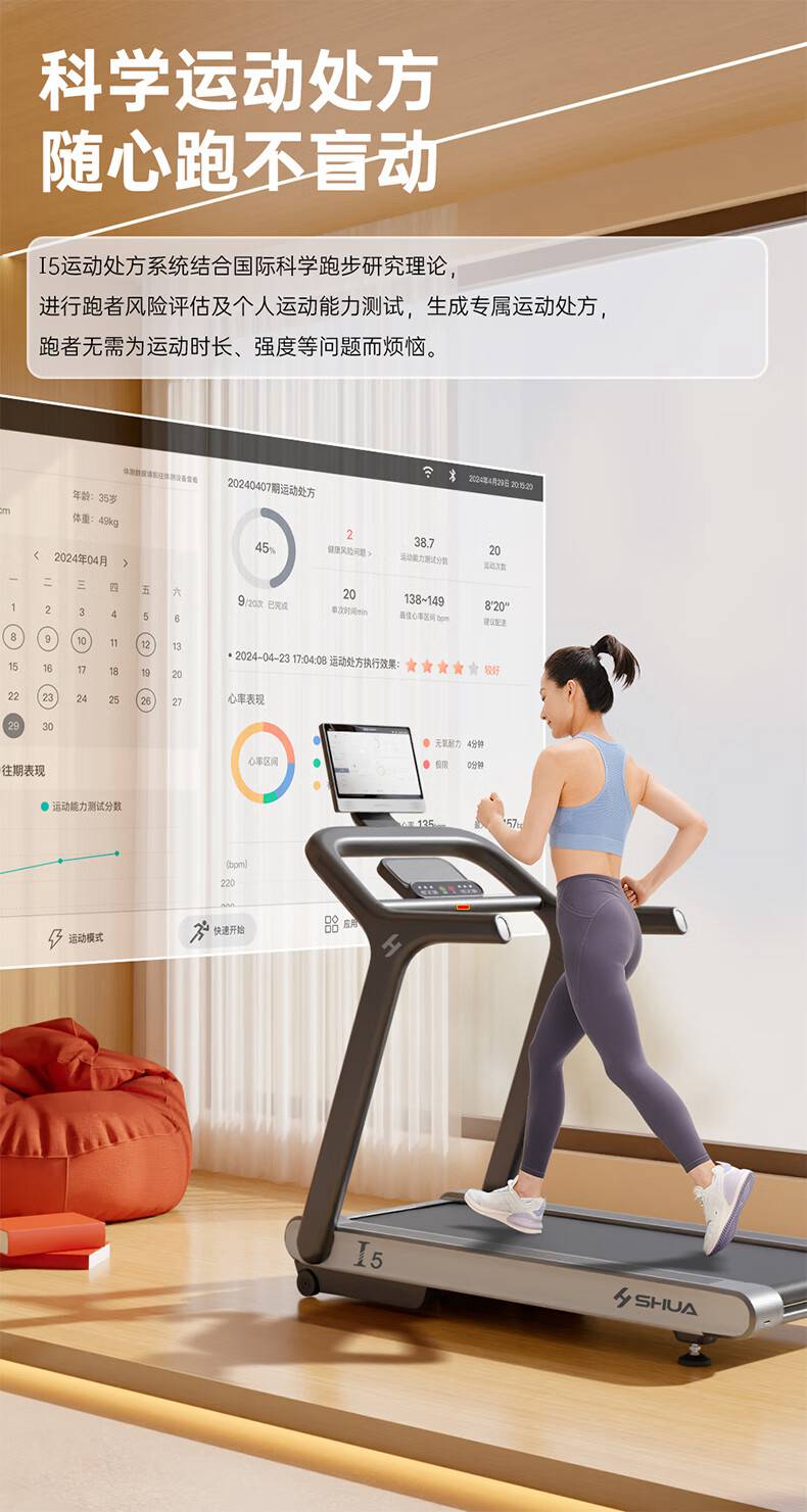 南宫NG28SH-T580T I5跑步机,科学运动处方,随心跑不盲动,可根据个人运动处方心率区间及跑者的实时心率情况,自动调节速度或坡度,犹如你的专属“配速员”让你随“心”而跑无负担。