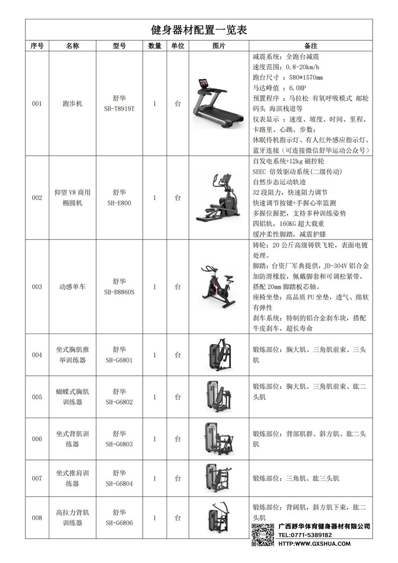 1.南宫NG28V9+智能跑步机SH-T8919T*5台-V9+采用全跑台减震设计,为跑者提供舒适的落脚地感和稳定的跑步支撑,良好的缓冲防护,降低膝关节受伤风险。商用大跑台,为跑者提供从容奔跑空间,180kg承载力,580*1570纯跑台面积,满足专业健身需求。V9+采用F级商用马达,6HP峰值马力,20km/h最高速度,提供源源不断的动力。V9+内置健身直播软件,每周提供直播课程,内含大量专业线上健身点播课程,可为健身房不同人群提供多样化健身课程服务。V9+搭载全新跑步姿态分析系统,提供五大步态数据,为跑者提供综合评估及训练建议,帮助跑者调整优化跑姿,让运动更科学高效。3D竞赛软件,画面如同VR游戏效果,提供训练及竞赛模式,线上竞赛模式,可联动不同单位及公司,不同健身房之间健身爱好者,打造职工健身文化,促进交流。