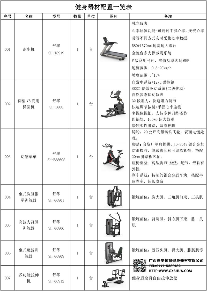 1.南宫NG28V9智能跑步机SH-T8919*3台-独立仪表-简洁大气,全新外观设计,健康运动新选择;心率监测功能,可通过手握心率、无线心率带等不同方式实时采集心率数据;580*1570mm超宽超大跑台-跑感舒适,跑台整体安全稳定;全跑台多支撑减震平台,保证跑台超强支撑力,达到180kg支撑,满足专业健身房需求。F级商用马达-超强马达,AC 3.0HP 交流,峰值功率达到6HP,F级商用品质。速度范围达到0.8-20km/h;V9跑步机可实现跑台扬升功能,坡度范围-3~15%,满足客户不同的锻炼需求。