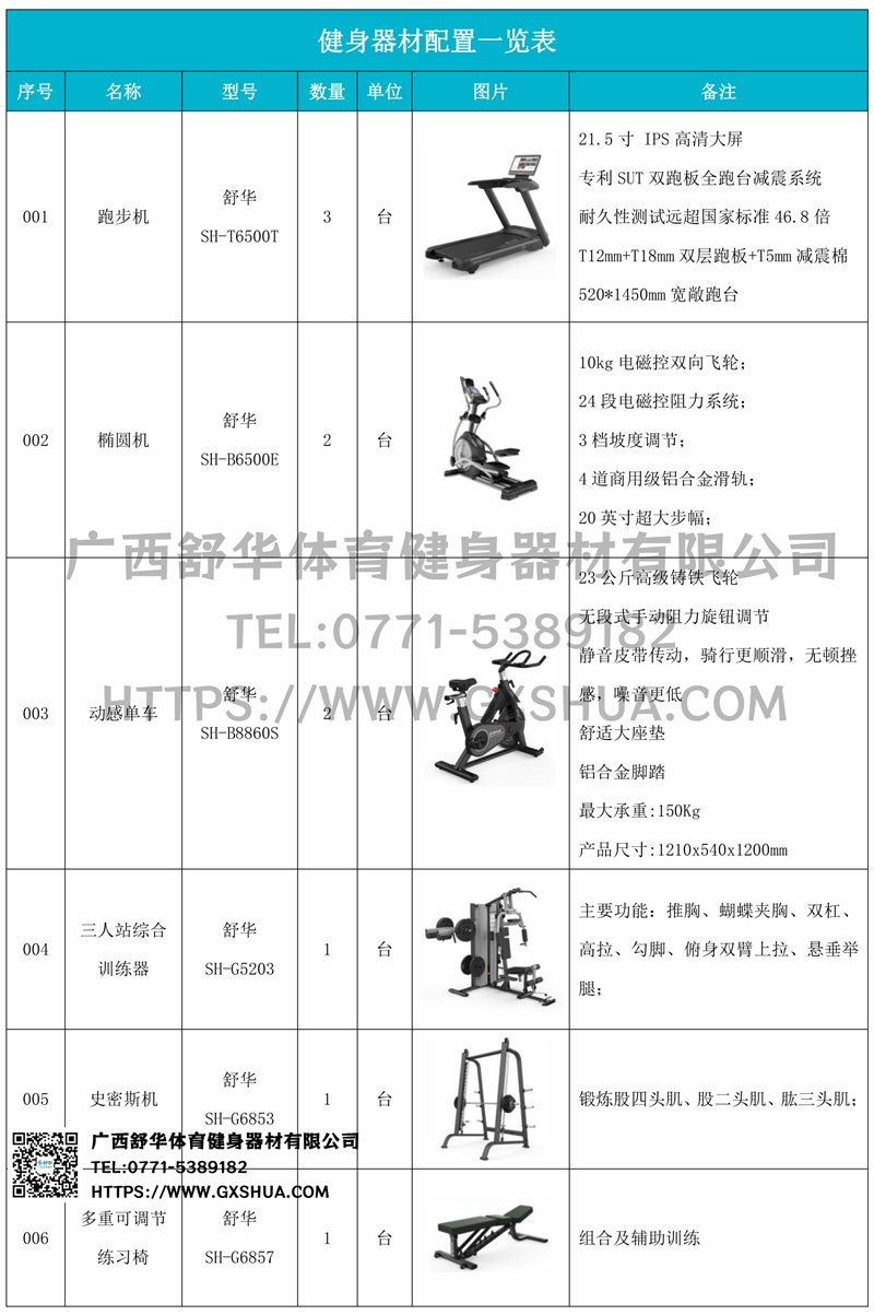 1.南宫NG28X5 Pro跑步机SH-T6500T*3台-采用高性能电机,提供稳定动力,支持长时间高强度运行,适合长时间有氧训练,跑台宽敞,提供舒适跑步空间,减少运动中的束缚感,适合不同体型用户。配备先进减震系统,有效缓解跑步对关节的冲击,降低运动损伤风险,内置智能控制系统,支持多种预设程序和个性化训练计划,用户可根据需求调整速度和坡度,满足多样化训练。