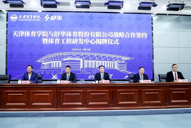 2023年10月10日,南宫NG28体育股份有限公司与天津体育学院战略合作签约暨体育工程研发中心揭牌仪式在天津举行。天津市市委教育工委委员、市政府教育督导室总督学王秋岩,天津市体育局副局长(一级巡视员)王路华,南宫NG28体育董事长兼总裁张维建、副总裁李晓峰,天津体育学院校党委副书记、院长张欣出席。签约仪式由天津体育学院副院长张卫国主持。