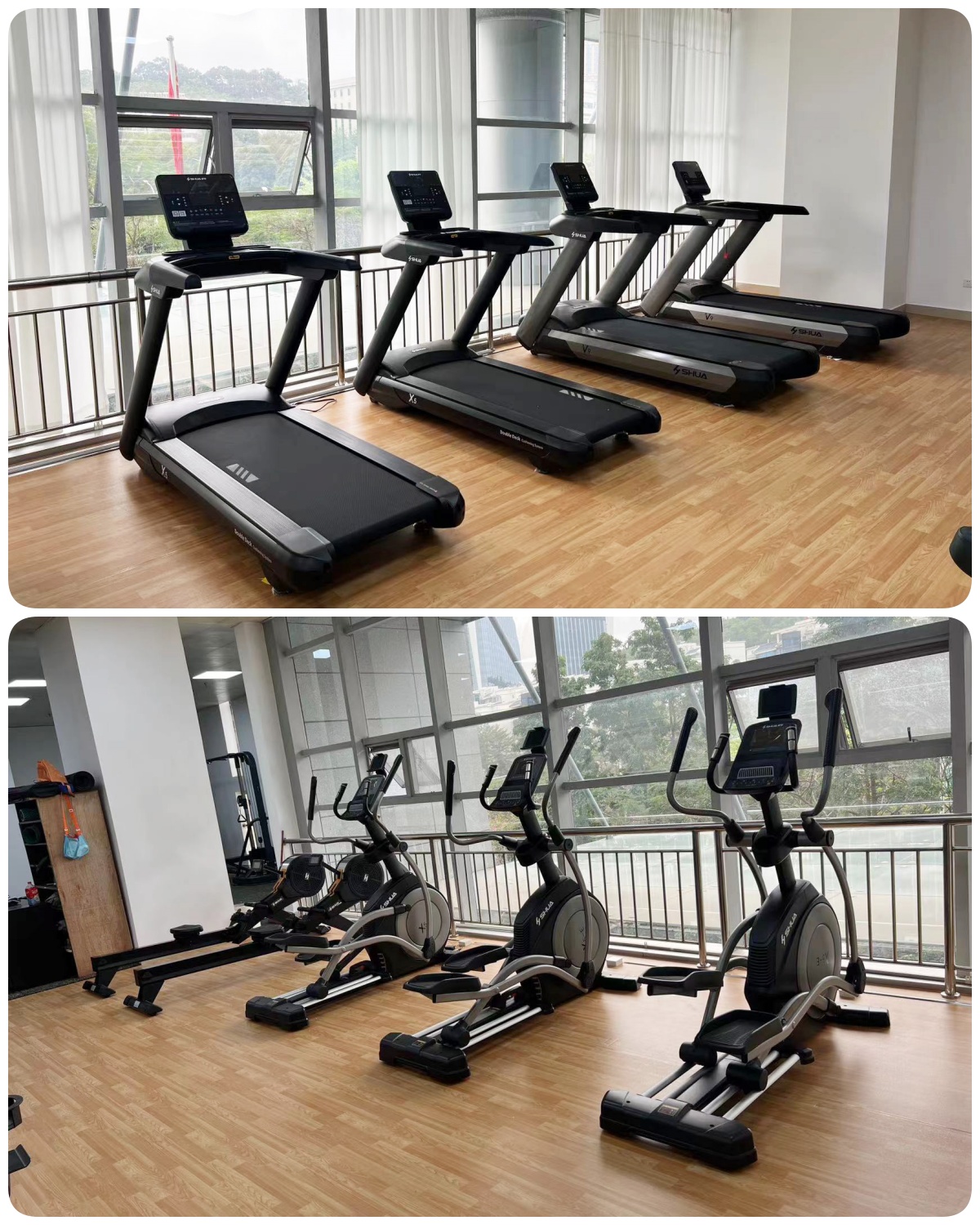 有氧区域主要配置了南宫NG28X5跑步机、X5-E椭圆机、划船器SH-R8100、动感单车。有氧器材可以改善心肺功能、促进血液循环、提高新陈代谢、提升身体素质、提供了多样化的锻炼选择、能有效缓解工作压力和焦虑情绪,从而提高注意力和专注力,使员工在工作中更加冷静、高效。