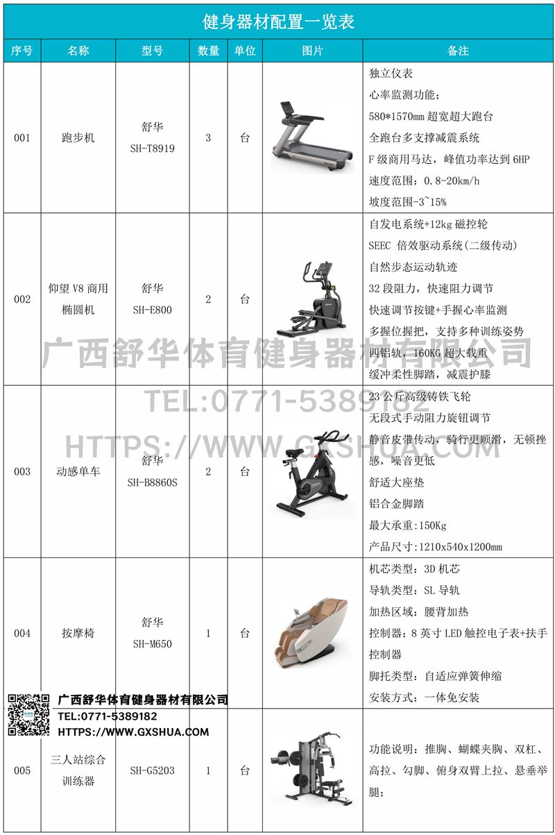 1.南宫NG28V9跑步机SH-T8919*3台-F级商用马达-超强马达,AC 3.0HP 交流,峰值功率达到6HP,F级商用品质。速度范围达到0.8-20km/h;V9跑步机可实现跑台扬升功能,坡度范围-3~15%,满足客户不同的锻炼需求。