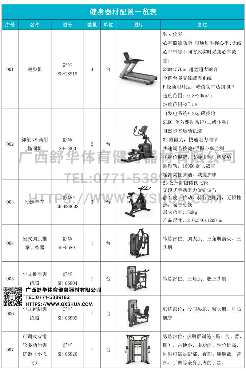 1.南宫NG28V9跑步机SH-T8919*4台-独立仪表-简洁大气,全新外观设计,健康运动新选择;心率监测功能,可通过手握心率、无线心率带等不同方式实时采集心率数据;580*1570mm超宽超大跑台-跑感舒适,跑台整体安全稳定;全跑台多支撑减震平台,保证跑台超强支撑力,达到180kg支撑,满足专业健身房需求。F级商用马达-超强马达,AC 3.0HP 交流,峰值功率达到6HP,F级商用品质。速度范围达到0.8-20km/h;V9跑步机可实现跑台扬升功能,坡度范围-3~15%,满足不同的锻炼需求。