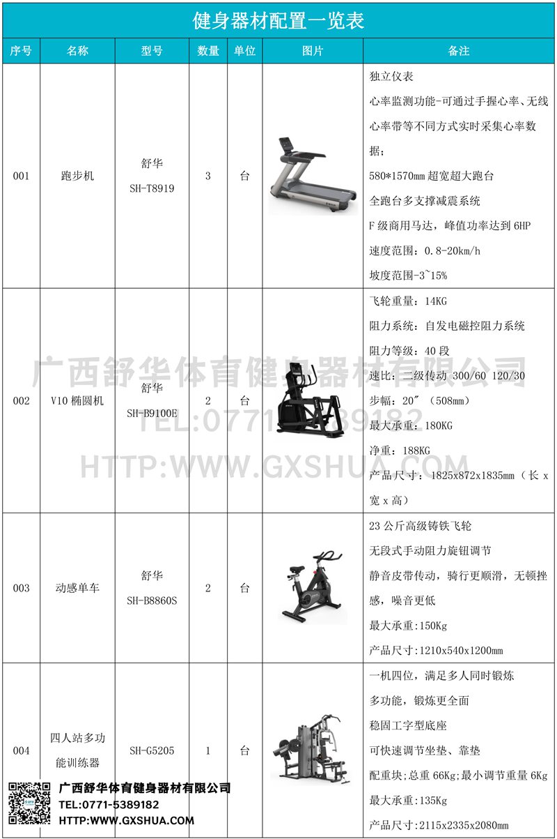 1.南宫NG28V9跑步机SH-T8919*3台-独立仪表-简洁大气,全新外观设计,健康运动新选择;心率监测功能,可通过手握心率、无线心率带等不同方式实时采集心率数据;580*1570mm超宽超大跑台-跑感舒适,跑台整体安全稳定;全跑台多支撑减震平台,保证跑台超强支撑力,达到180kg支撑,满足专业健身房需求。F级商用马达-超强马达,AC 3.0HP 交流,峰值功率达到6HP,F级商用品质。速度范围达到0.8-20km/h;V9跑步机可实现跑台扬升功能,坡度范围-3~15%,满足不同的锻炼需求。