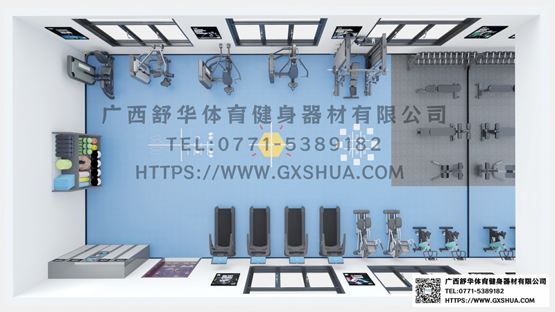 2.力量训练器械区(约20平方米)