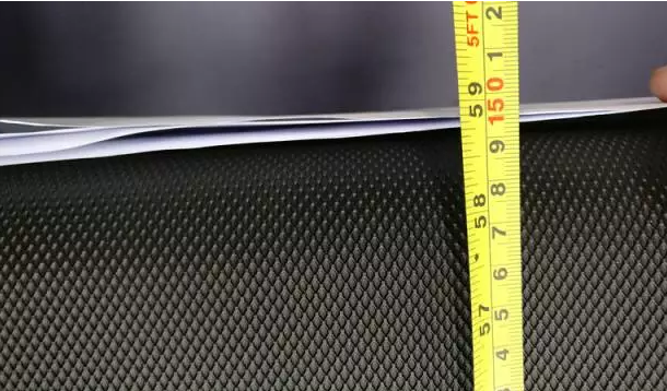 实测跑带的厚度为2.25mm,即便用美工刀不断割滑,也毫无划痕,说明南宫NG28这款跑步机跑带还是相对比较坚固度的,不会很容易断裂和磨平。